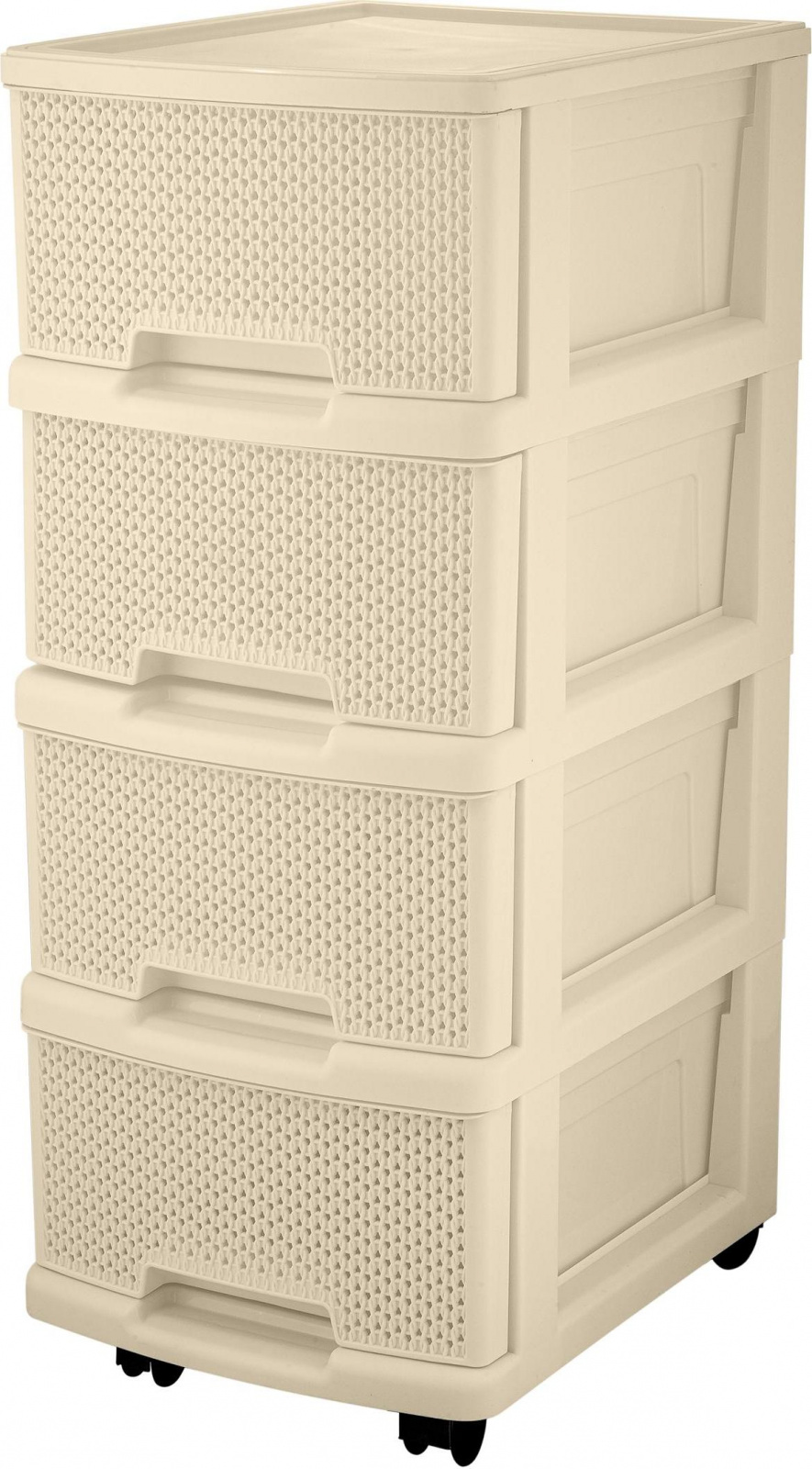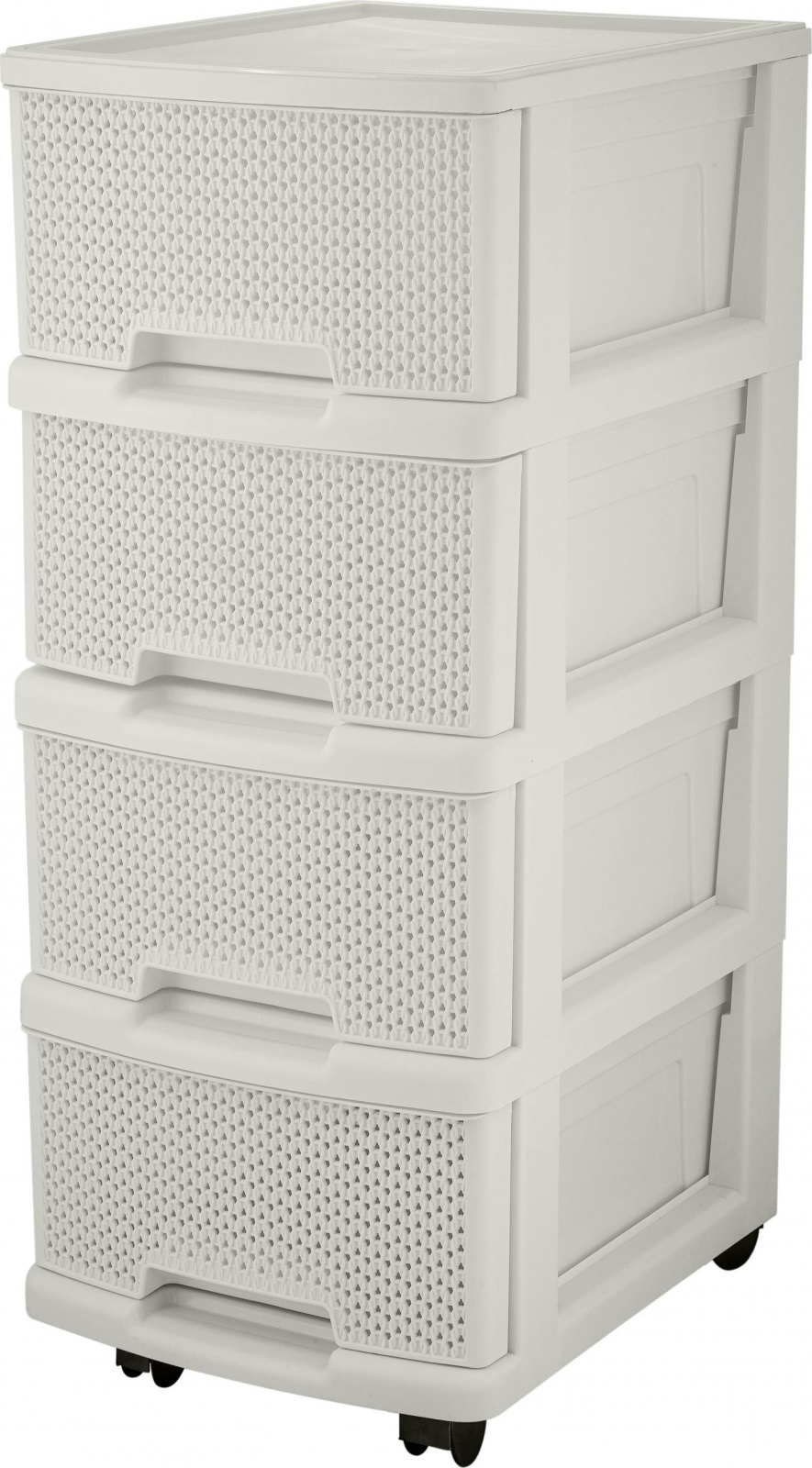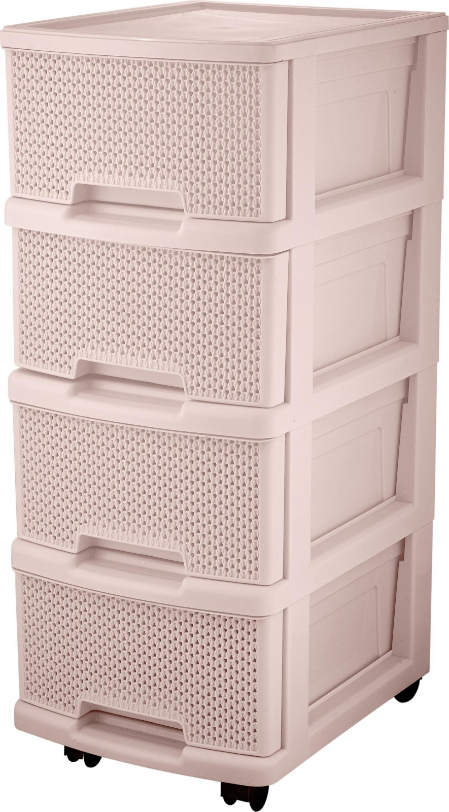 Комод Keeplex Ajur с ящиками на колесиках четырехсекционный компакт 37х30х73см идеально подойдет для организации хранения в гостиной, ванной комнате, прихожей или кухне. Компактный размер позволяет удобно разместить комод в небольших помещениях. По ширине идеально подходит под формат бумаги А4. Спереди остается еще ~3 см для захвата стопки бумаги, и чтобы вынуть ее. Колесики для удобного перемещения комода во время уборки или перепланирования пространства. Уютный декор Ajur - ажурная фактура вязания будет прекрасным дополнением к другим изделиям из коллекции бренда Keeplex. Самое ажурное и легкое плетение в стиле вязания из всех, представленых на рынке. Габариты в собранном виде: 370х300х730 мм.