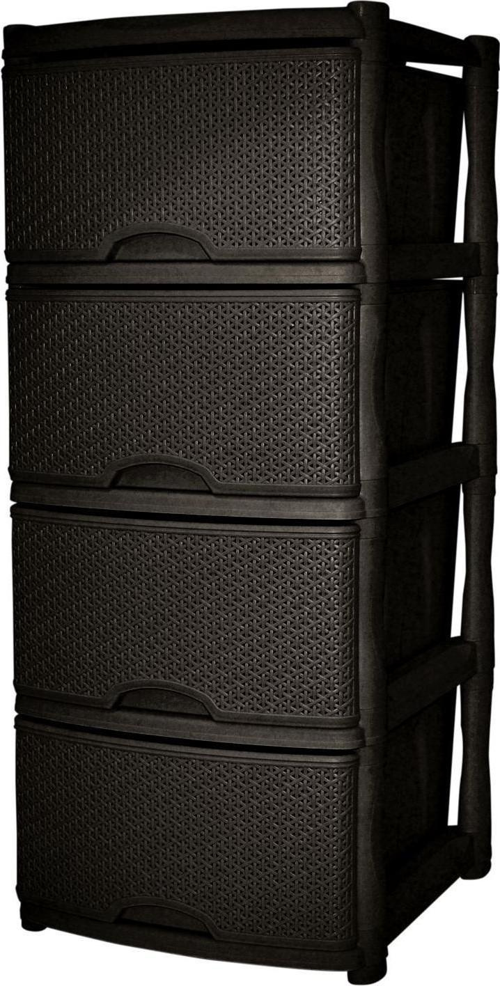 Комод Keeplex Ротанг четырехсекционный 48х41х94,5см сделан из прочного, но в то же время легкого пластика, благодаря чему прослужит долгое время. В нем можно хранить все, что угодно: одежду, обувь, детские игрушки, необходимые мелочи. Стильный комод Ротанг с уникальным дизайном в стиле ротанг отлично впишется и дополнит интерьер квартиры, дома или офисного помещения. Сборка комода не требует дополнительных инструментов и занимает не более 10-15 минут. Размеры комода в собранном виде 480х410х945 мм. Входит в коллекцию бренда Keeplex "Ротанг", что позволяет подобрать различные предметы для дома в едином стиле.