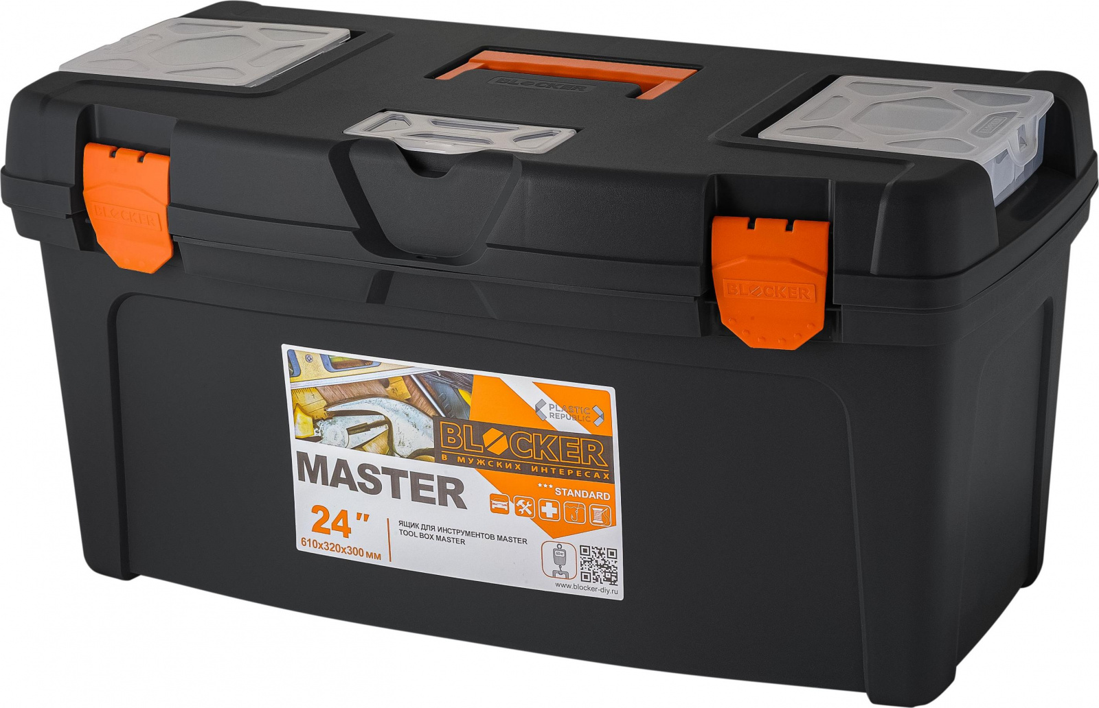 Ящик для инструментов BLOCKER серия Master, со съёмными органайзерами, 24", 610х315х310 (BR6006)