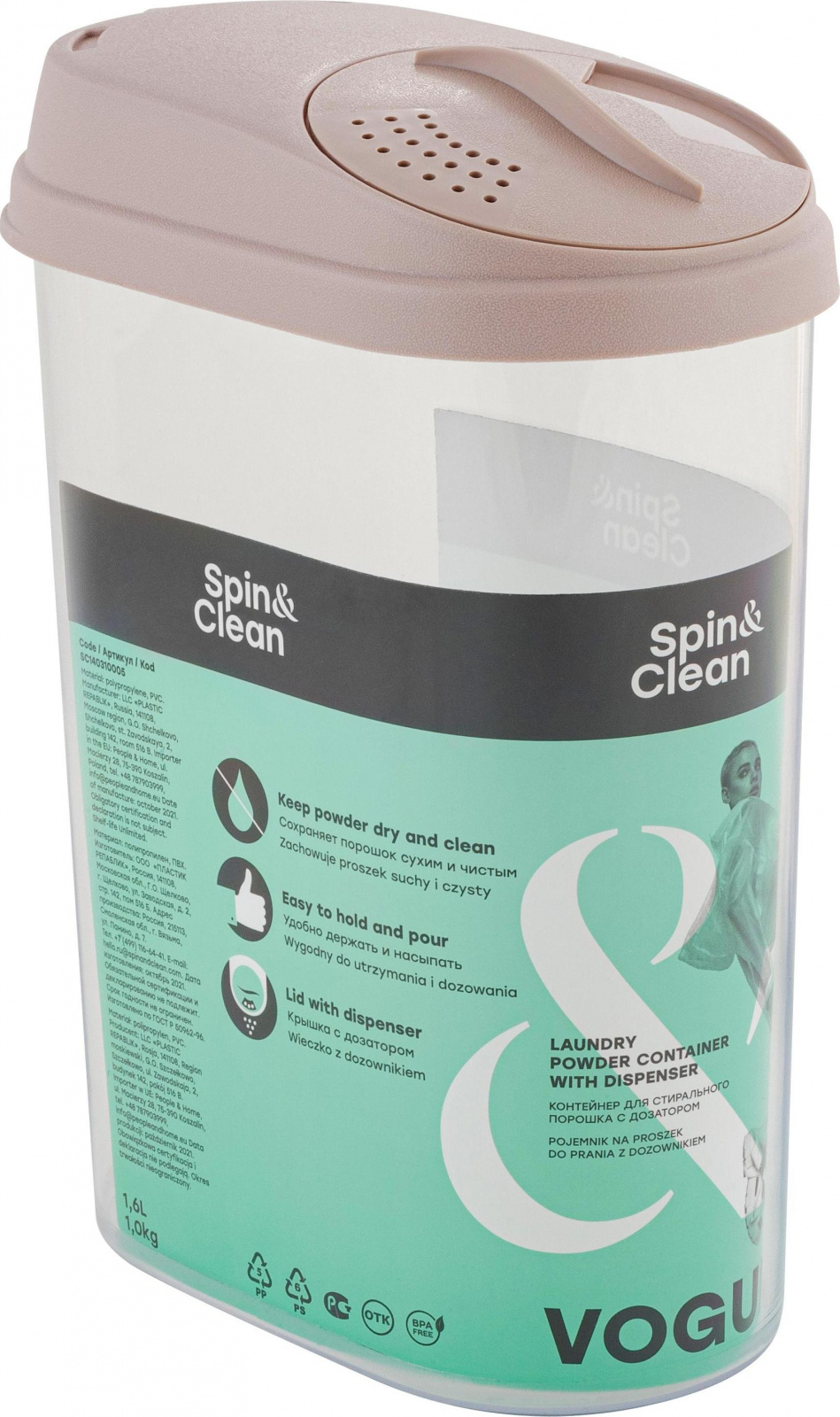 Контейнер для порошка Spin&Clean коллекция Step, герметичный, с дозатором, 245х105х260 (SC1405)