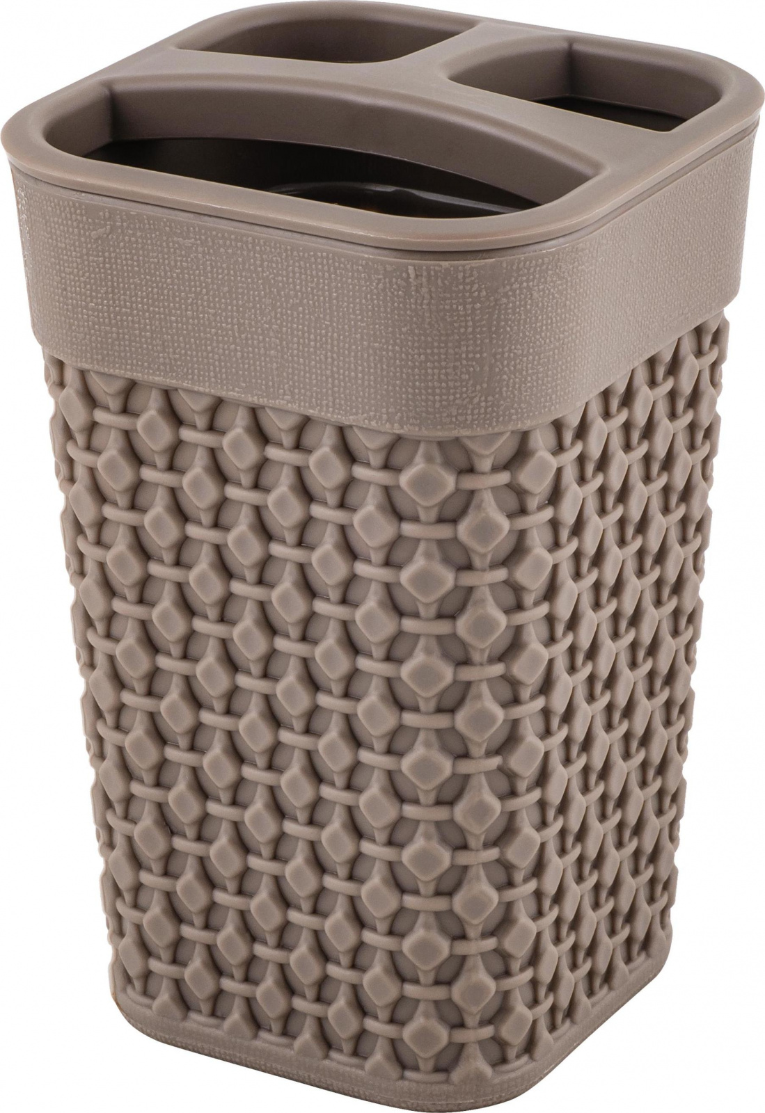 Подставка для зубных щеток OSLO имеет отдельные отверстия для 2-х щеток и пасты и поможет вам организовать пространство в ванной комнате. Аксессуар сделан из безопасного пластика и прекрасно подходит для помещений с традиционно повышенной влажностью и высокими требованиями к гигиеничности. Актуальное плетение, модные цветовые решения и, конечно, скандинавская функциональность – главные отличительные черты коллекции OSLO. Она состоит из корзин для хранения разных литражей с крышками и без, органайзеров, аксессуаров для ванной. Размеры (ДхШхВ): 7,5х7,5х11,3см