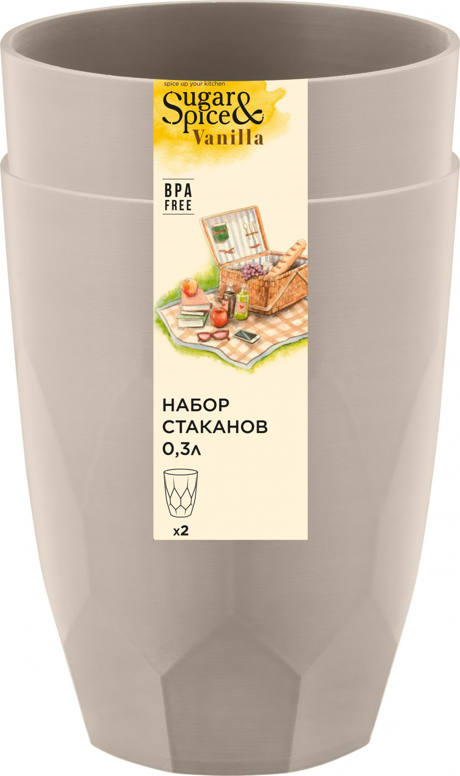 Стакан Sugar&Spice, 2 шт (0,3л), для холодных и горячих напитков, многоразовый, 0,3л, 77х77х130 (SE1806)