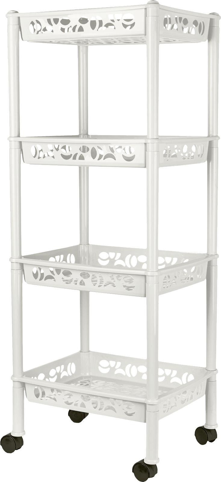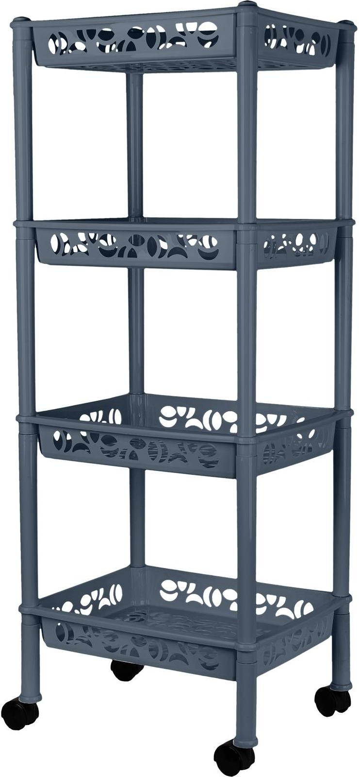Этажерка Keeplex Light на колесиках четырехсекционная малая прямоугольная 58х18х93,5 см - это эффективное и недорогое решение для организации хранения в небольших помещениях, на кухне, в ванной, на балконе или лоджии, в кладовой или на даче. Отличительная особенность этажерки - она невысокая и войдет под любую столешницу. Напольная этажерка состоит из четырех полок с небольшими бортиками. Габариты этажерки в собранном виде: 580х180х935мм, она собирается без инструментов за несколько минут, достаточно соединить стойки и полки, вставить ножки и заглушки. Вместительные полки применяются для хранения большого количества хозяйственных мелочей. На нижних ножках предусмотрены колесики, ее легко выдвигать и устанавливать на место. Оригинальный дизайн. Входит в коллекцию бренда Keeplex "Light", что позволяет подобрать различные предметы для дома в едином стиле.