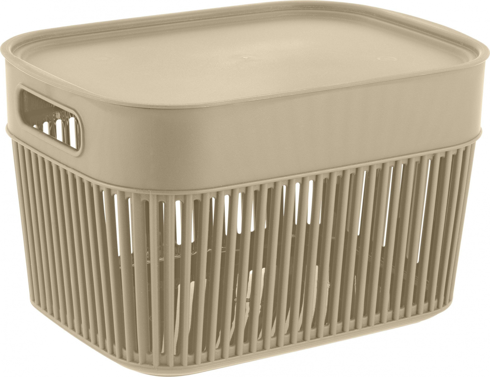 Корзина Keeplex 3л с крышкой — стильное решение для хранения в ванной, на кухне или в гостиной. Изготовлена из пищевого пластика, устойчива к влаге и легко моется. Подходит для фруктов, сладостей, белья, косметики. Скругленные края ручки не будут врезаться в ладонь. Прочный и легкий корпус с вертикальными рейками обеспечивает проветривание содержимого. Плоская крышка позволяет удобно установить корзины одну на другую, организовав полноценную систему хранения. Минималистичный дизайн с прямыми линиями, мягкими углами и природными оттенками украсит любой интерьер. Матовое soft-touch покрытие создает приятные тактильные и визуальные эффекты. В коллекции представлены: прямоугольные корзины 3л, 5л, 12л; квадратные корзины 9,5л и 19л. Габариты: 220х159х134 мм.