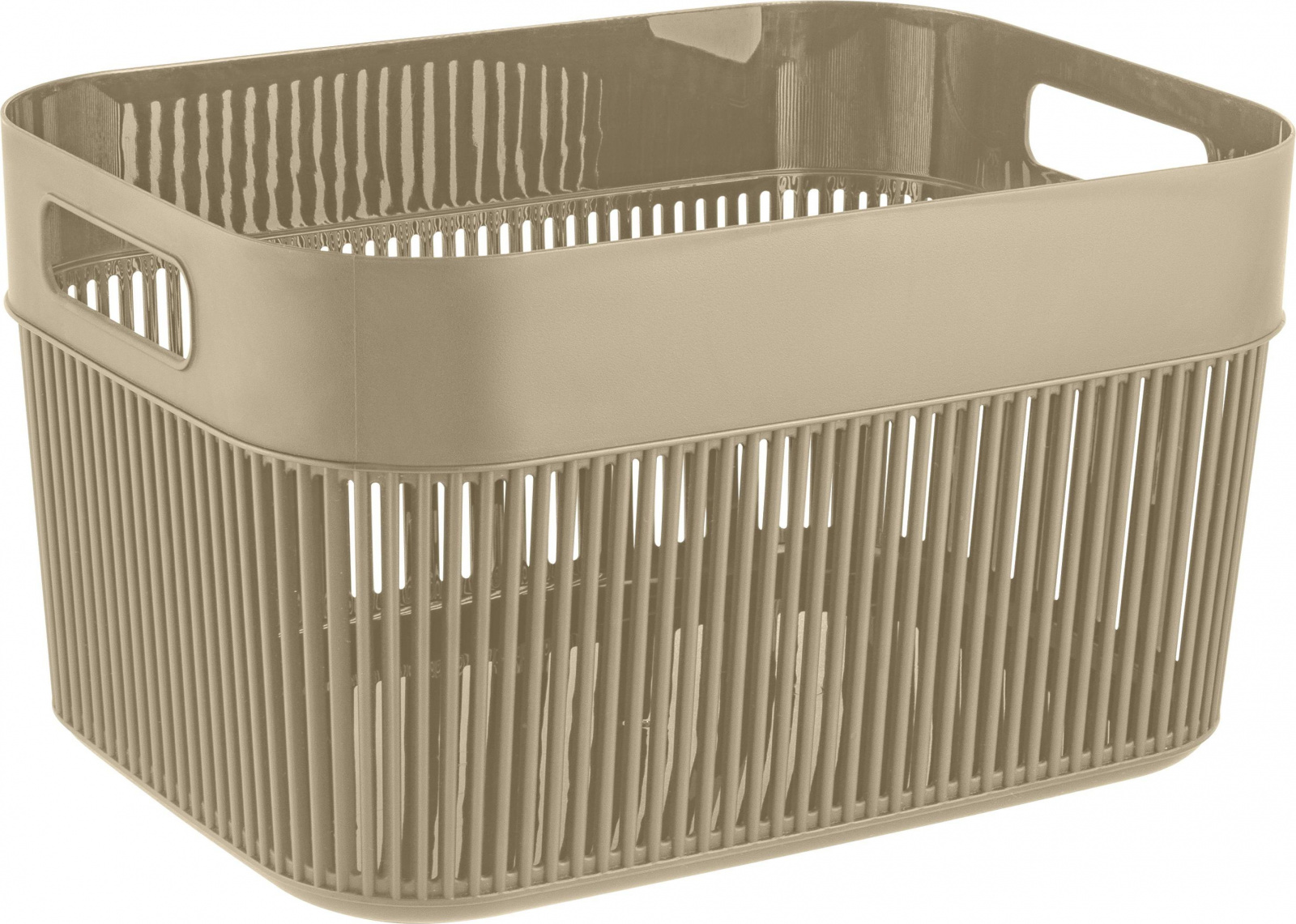 Корзина Keeplex 12л с ручками — стильное решение для хранения в ванной, на кухне или в гостиной. Изготовлена из пищевого пластика, устойчива к влаге и легко моется. Подходит для фруктов, сладостей, белья, косметики. Скругленные края ручки не будут врезаться в ладонь. Прочный и легкий корпус с вертикальными рейками обеспечивает проветривание содержимого. Минималистичный дизайн с прямыми линиями, мягкими углами и природными оттенками украсит любой интерьер. Матовое soft-touch покрытие создает приятные тактильные и визуальные эффекты. В коллекции представлены: прямоугольные корзины 3л, 5л, 12л; квадратные корзины 9,5л и 19л. Габариты: 338х246х190 мм.