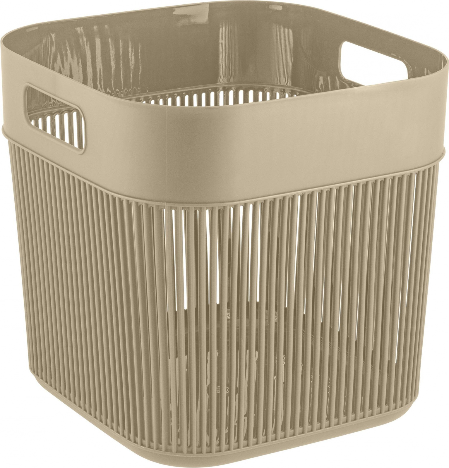 Корзина Keeplex 19л с ручками — стильное решение для хранения в ванной, на кухне или в гостиной. Изготовлена из пищевого пластика, устойчива к влаге и легко моется. Подходит для фруктов, сладостей, белья, косметики. Скругленные края ручки не будут врезаться в ладонь. Прочный и легкий корпус с вертикальными рейками обеспечивает проветривание содержимого. Минималистичный дизайн с прямыми линиями, мягкими углами и природными оттенками украсит любой интерьер. Матовое soft-touch покрытие создает приятные тактильные и визуальные эффекты. Идеальна для квадратных стеллажей. В коллекции представлены: прямоугольные корзины 3л, 5л, 12л; квадратные корзины 9,5л и 19л. Габариты: 284х284х282 мм.